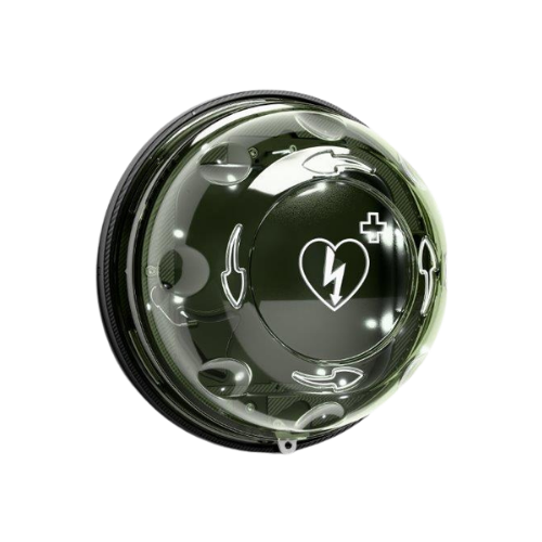 Genom att vrida locket öppnas skåpet snabbt och hela fronten tas bort, vilket ger fri åtkomst till hjärtstartaren. Den enkla öppningsmekanismen gör att användaren snabbt kan få tag i hjärtstartaren utan komplicerade moment – något som är avgörande när varje sekund räknas.