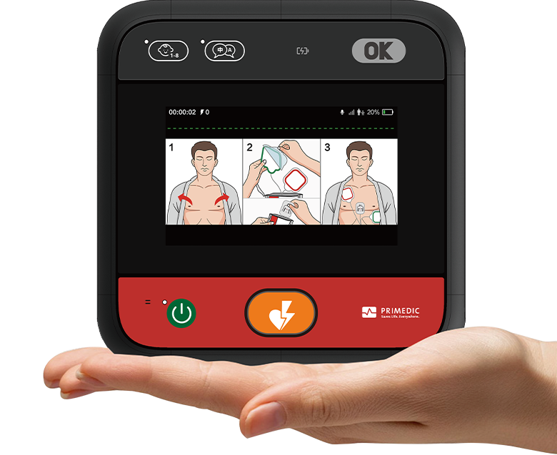 Enheten guidar användaren genom hela räddningsinsatsen med tydligaröstinstruktioner och visuella symboler som visar hur elektroderna skaplaceras. Instruktionerna anpassas efter användarens tempo, vilket gör att även personer utan medicinsk utbildning kan använda hjärtstartaren påett tryggt sätt.